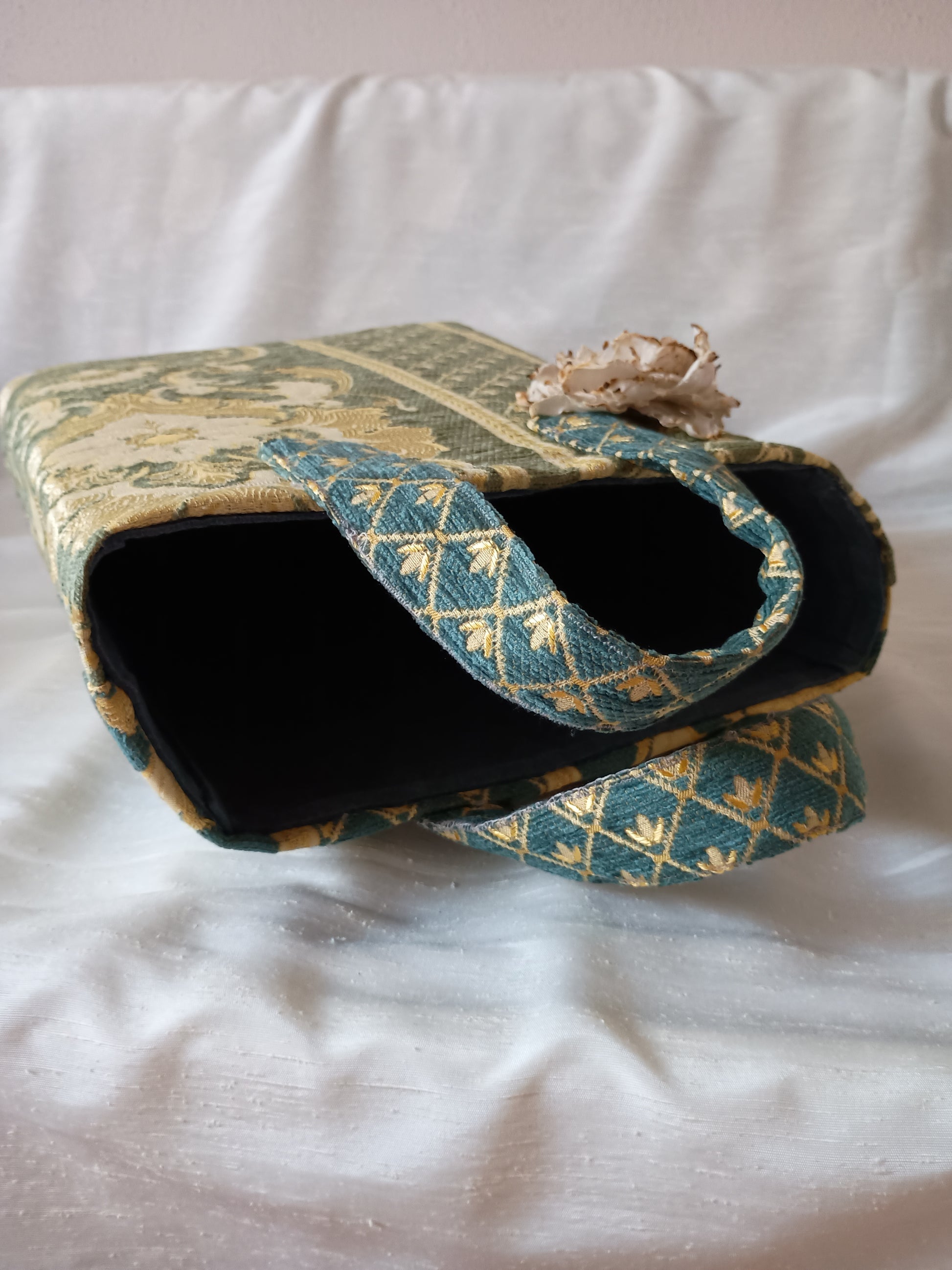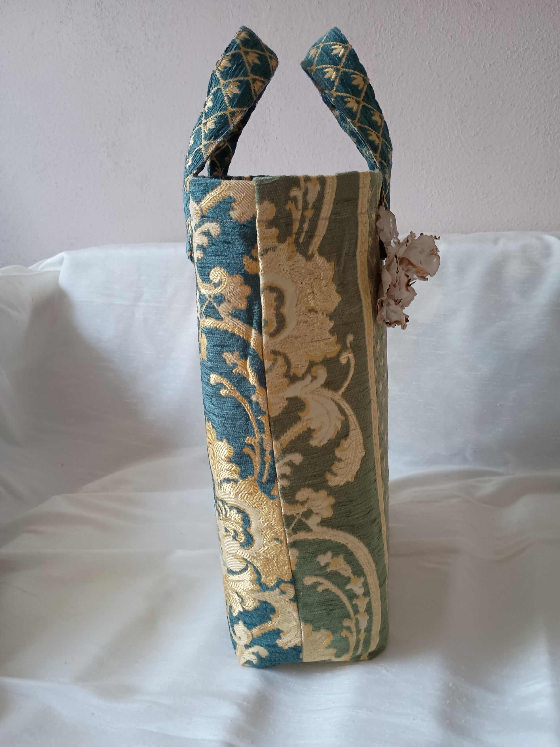 Materiale: Tessuto damascato pregiato in verde salvia e oro