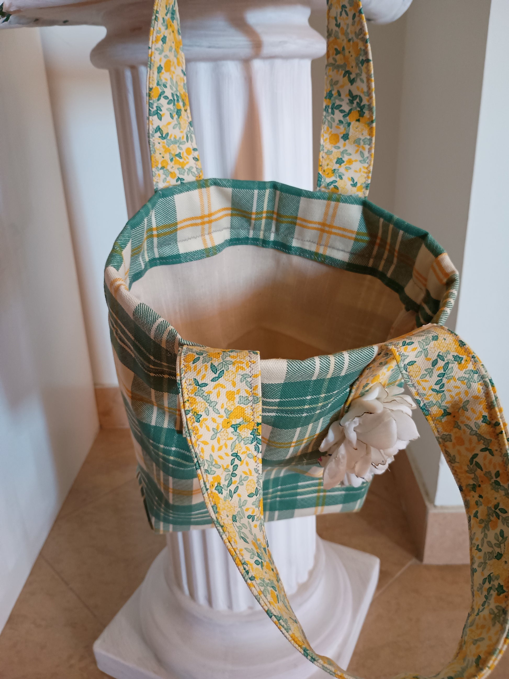 Il tessuto molto resistente a quadretti verdi e gialli trasmette armonia e gioia,
