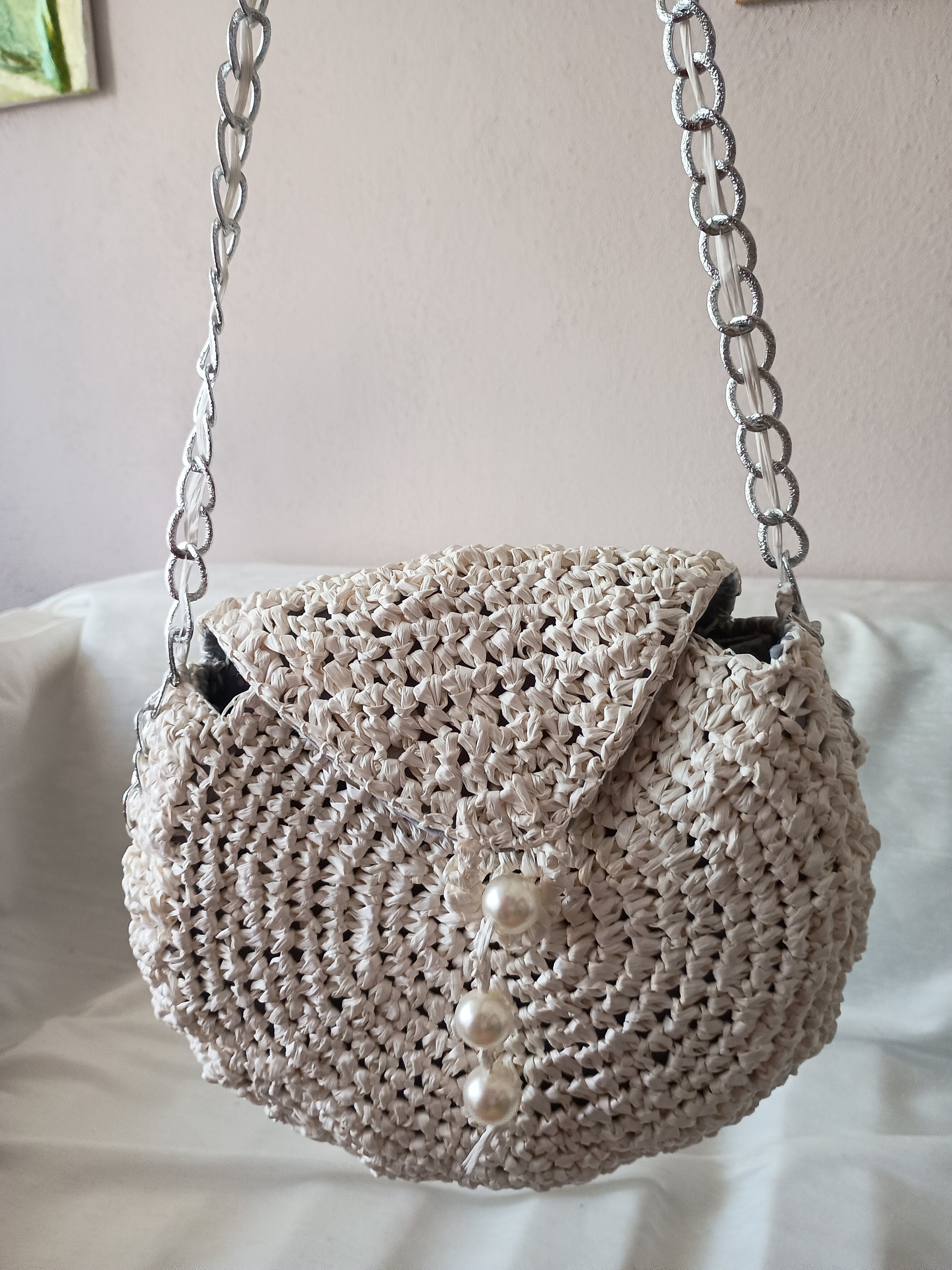 "Perla di Rafia" – Borsa a tracolla fatta a mano
